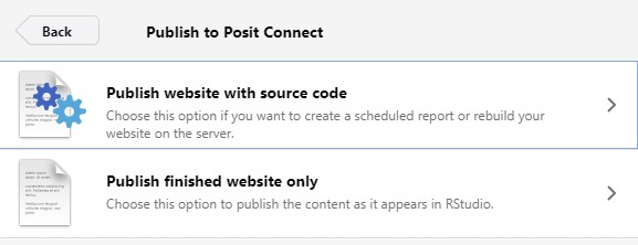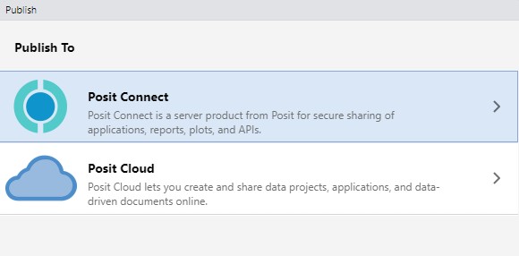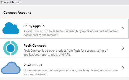 At this point if you are doing it for the first time, you will be asked to connect to an account. Choose Posit Connect.