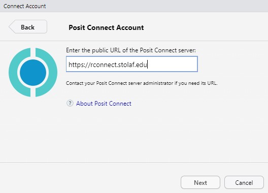 Enter “https://rconnect.stolaf.edu” as the URL then click next.